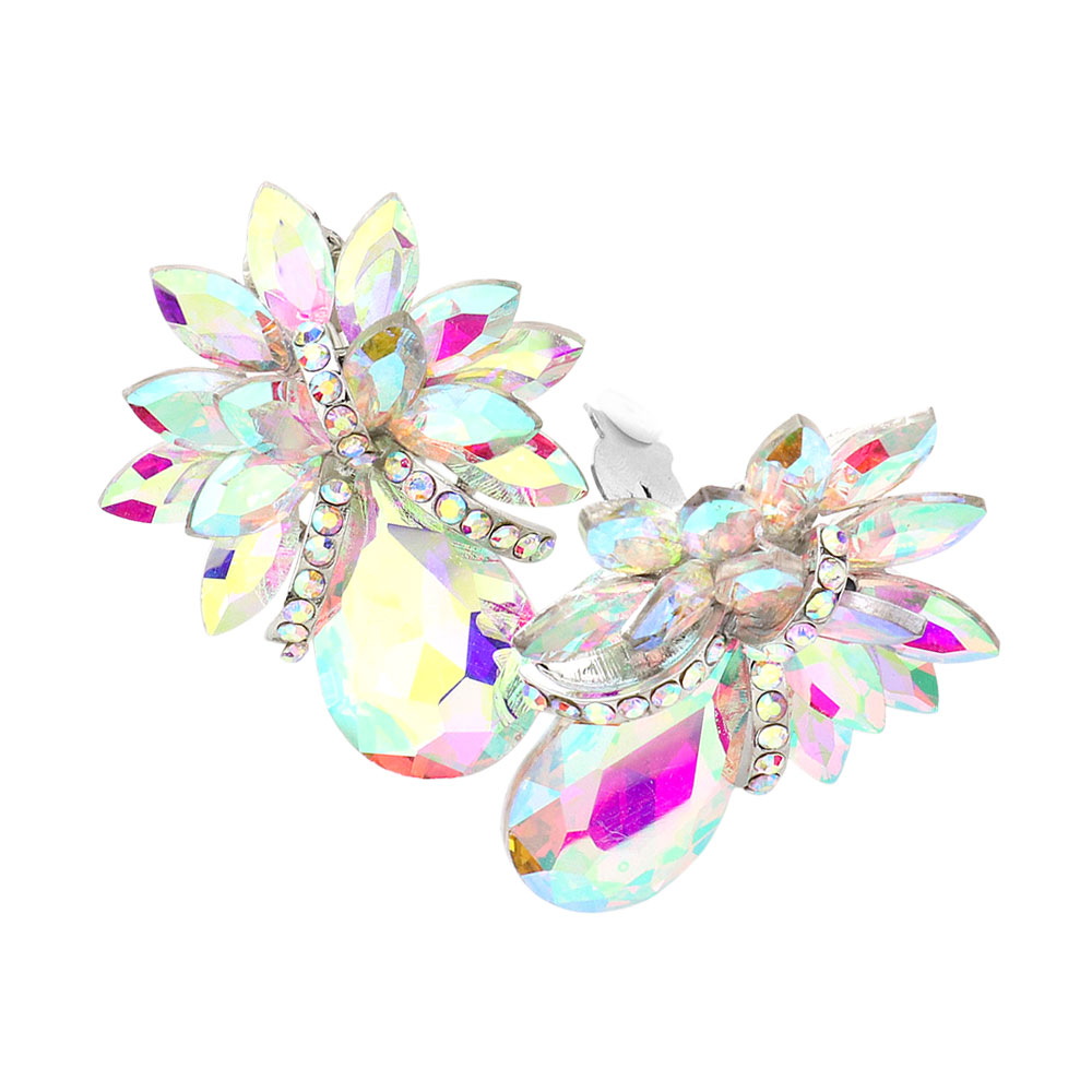 Teardrop Stone Accented Clip on Evening Earrings