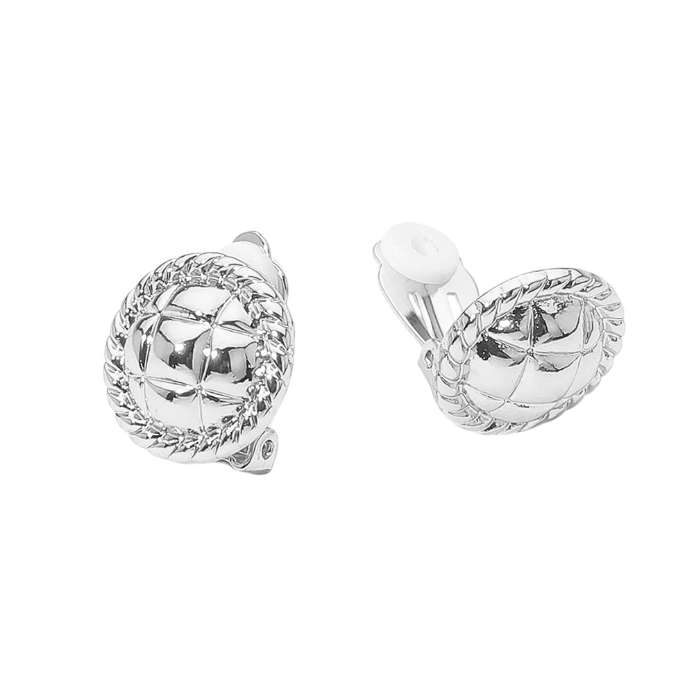 Details • Size : 0.7" X 0.7" • Clip On • Elegant round clip-on earrings featuring a quilted pattern with braided edge detail. Comfortable for non-pierced ears, these timeless earrings add a sophisticated touch to casual or dressy outfits, making them versatile accessories for everyday wear or special occasions. • Lead and Nickel Compliant