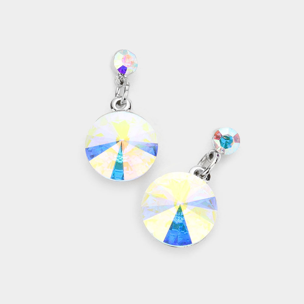 Round Teardrop Stone Cluster Link Drop Evening Earrings