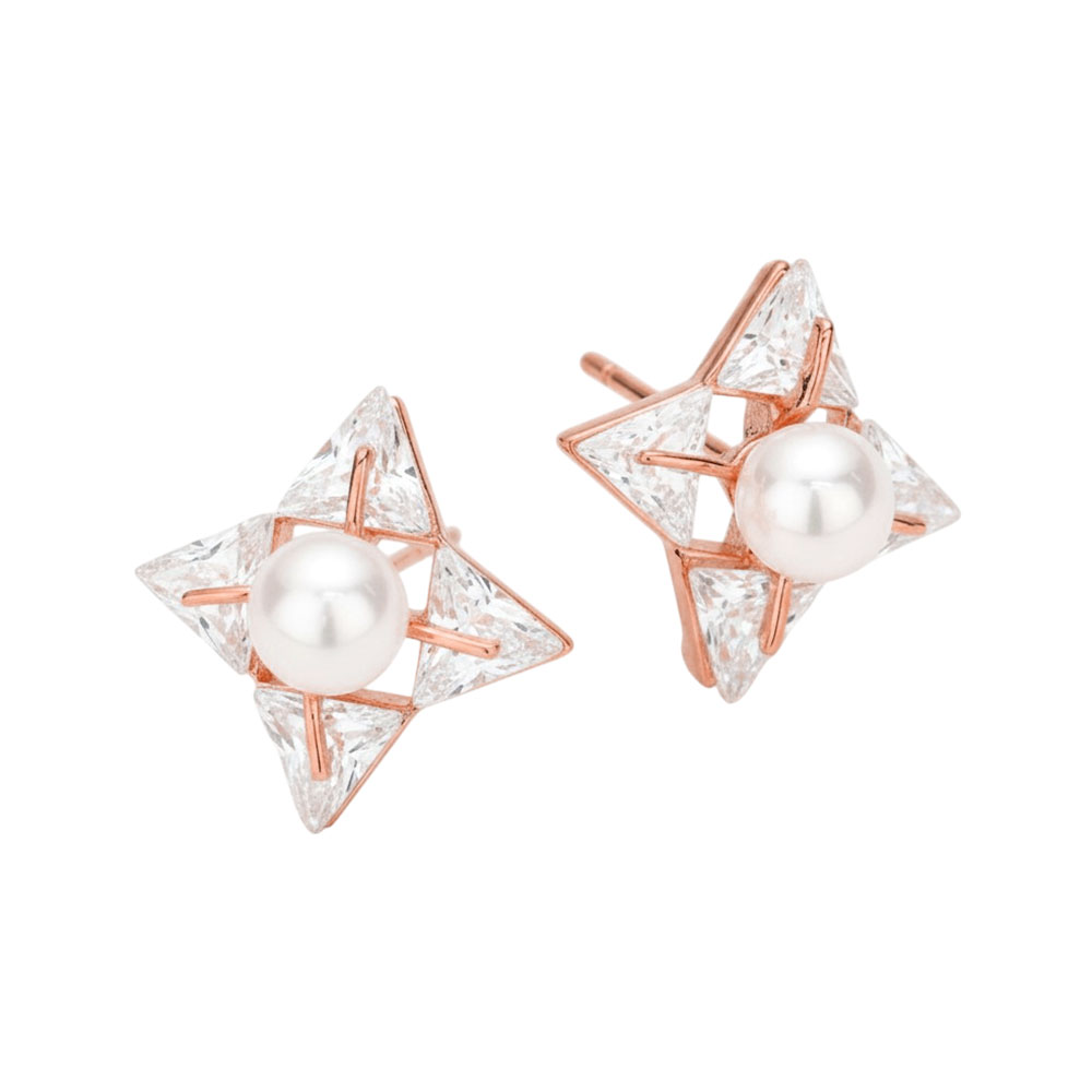 Pearl Centered Crystal CZ Stone Star Stud Earrings