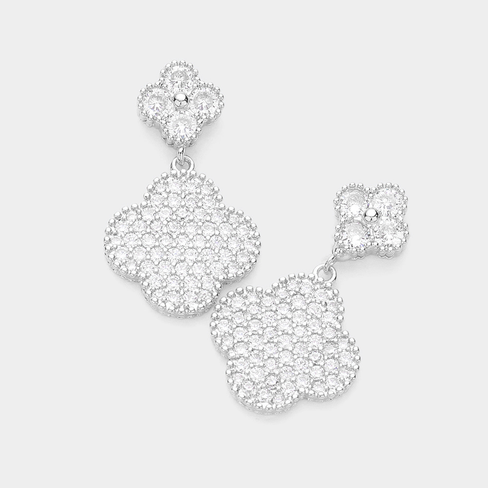 Glass Quatrefoil Stone Cluster Dangle Earrings