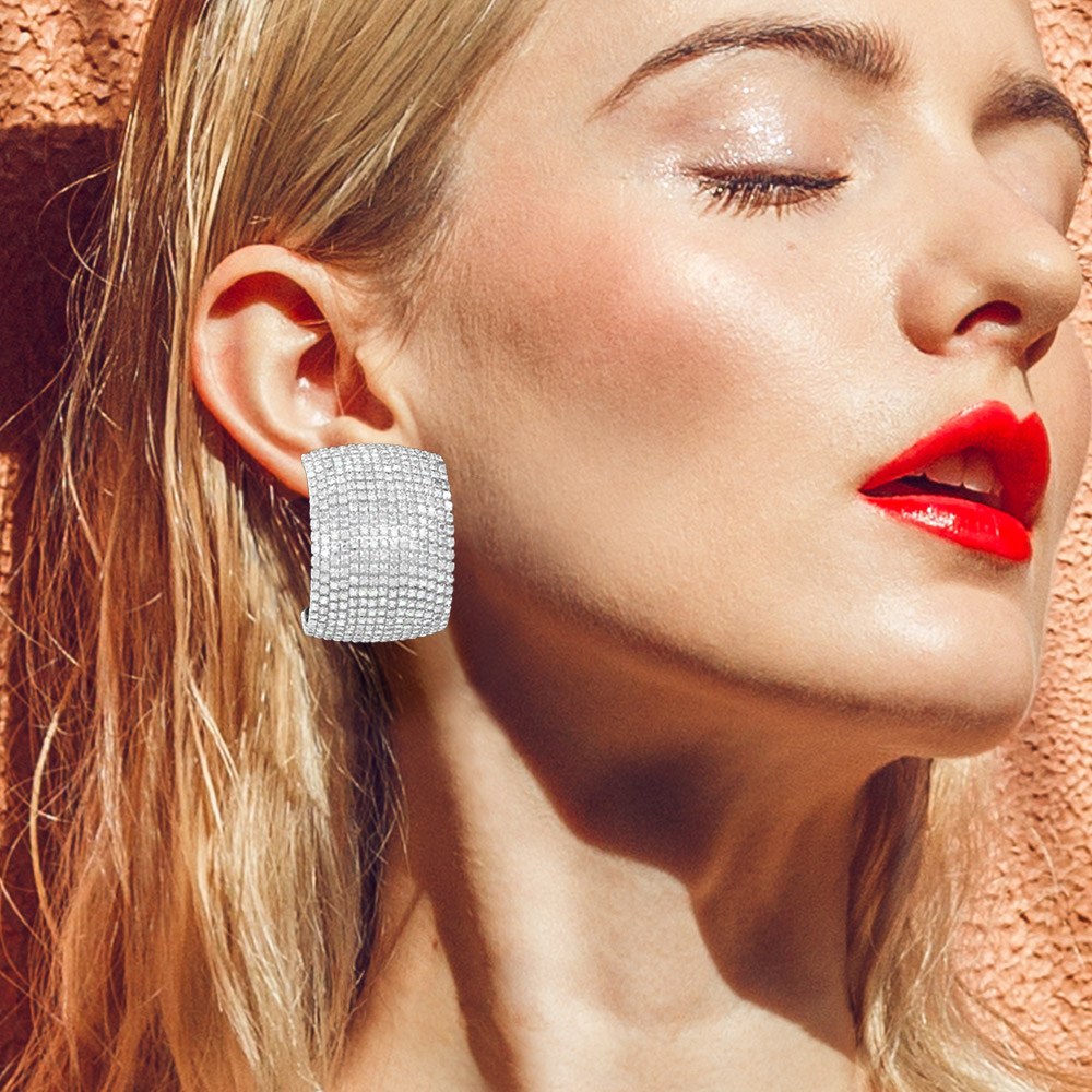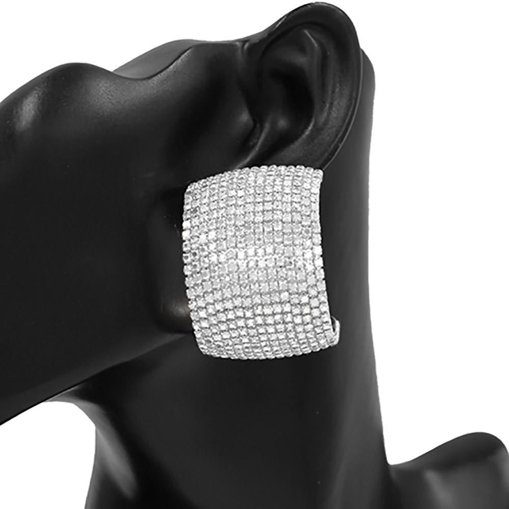Details • Size : 1.25" X 1.75" • Post Back • Embrace contemporary glamour with these rectangular crystal earrings designed to reflect light from every angle. Their bold yet refined look adds instant sophistication, making them the perfect accessory for evening wear, celebrations, or chic everyday style. • Lead and Nickel Compliant