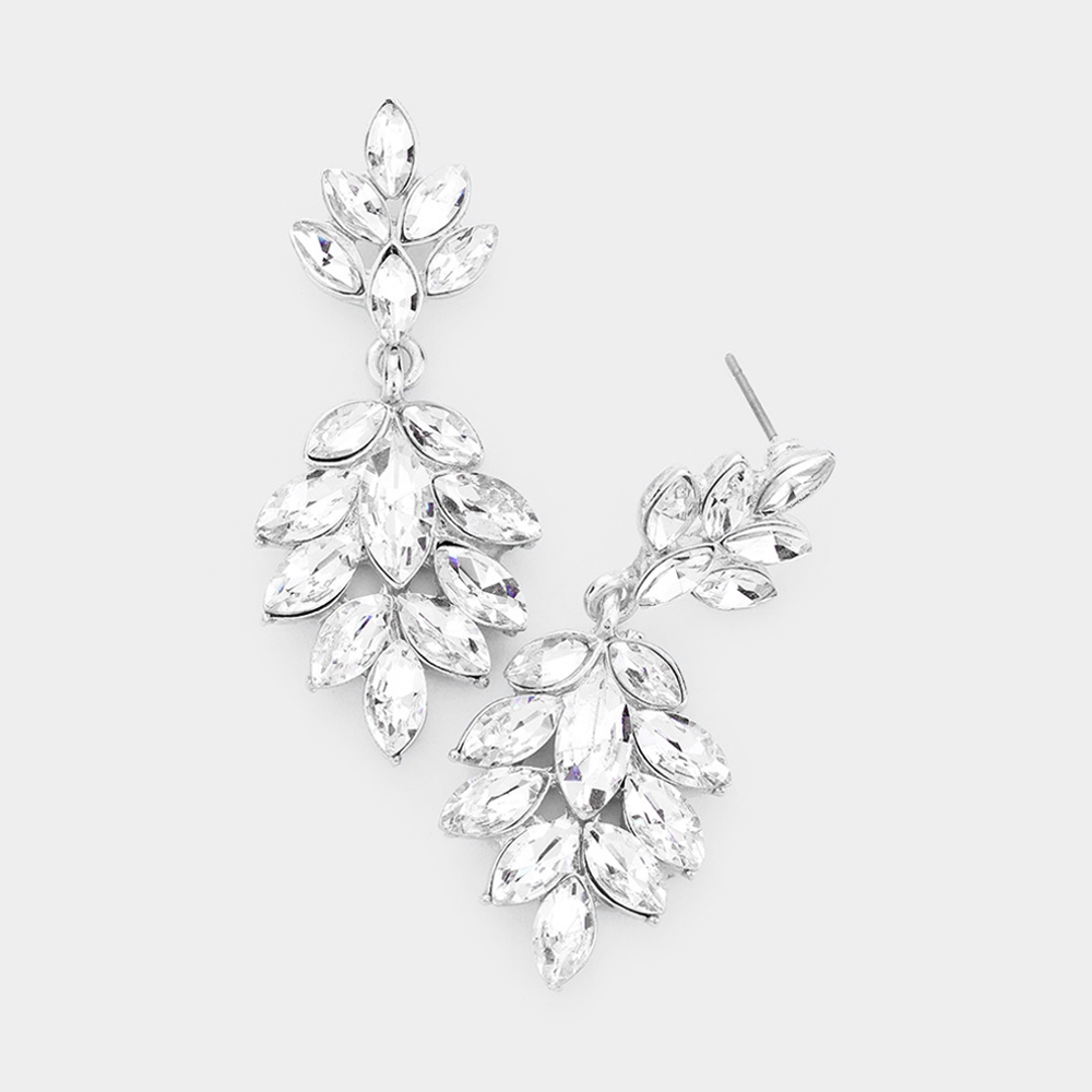 Double Marquise Stone Teardrop Link Dangle Evening Earrings