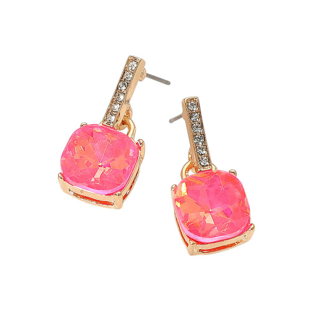 Cushion Square Stone Dangle Evening Earrings Cushion Square Stone Dangle Evening Earrings