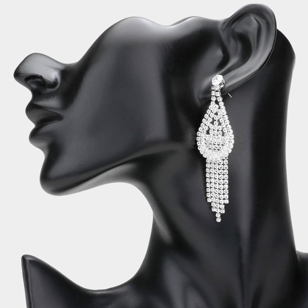 Crystal Rhinestone Pave Fringe Evening Earrings