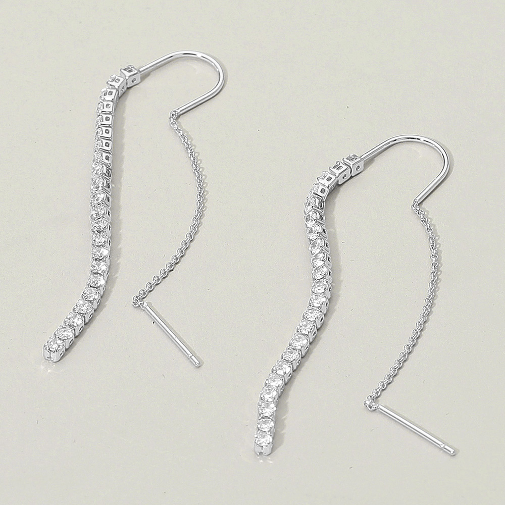 CZ Stone Cluster Link Threader Drop Earrings CZ Stone Cluster Link Threader Drop Earrings CZ Stone Cluster Link Threader Drop Earrings