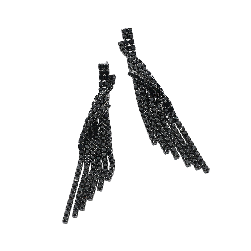 • Stylish dangle earrings featuring cascading cz rhinestone tassels in a layered fringe design. The flowing strands create elegant movement, perfect for evening wear, parties, and adding a touch of glamour to any outfit.