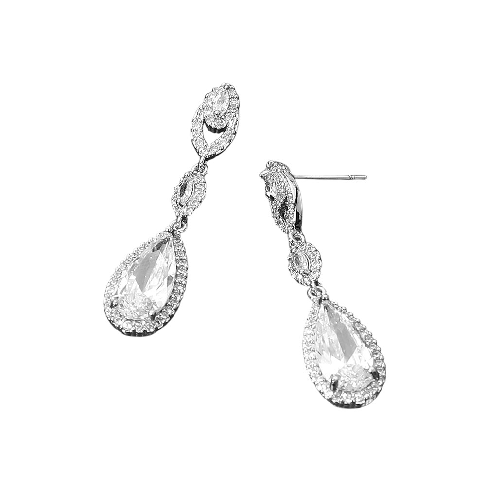 Details • Size : 0.5" X 1.6" • Post Back • These cubic zirconia teardrop dangle earrings exude timeless sophistication with their graceful silhouette and radiant sparkle. The elegant drop design catches the light beautifully, adding a refined touch that elevates both formal and everyday looks with effortless glamour. • CZ Cubic Zirconia • Lead and Nickel Compliant