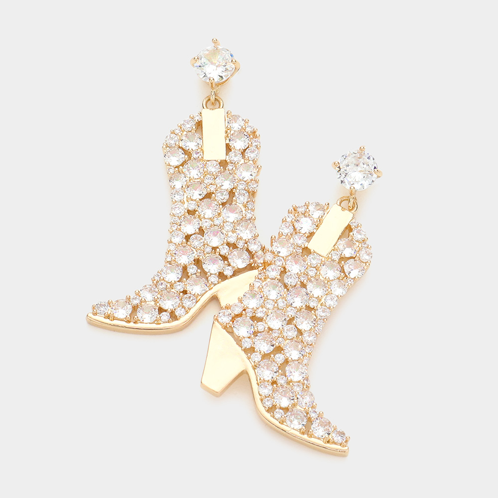 Pink Ribbon Accent Rhinestone Paved High Heel Dangle Earrings