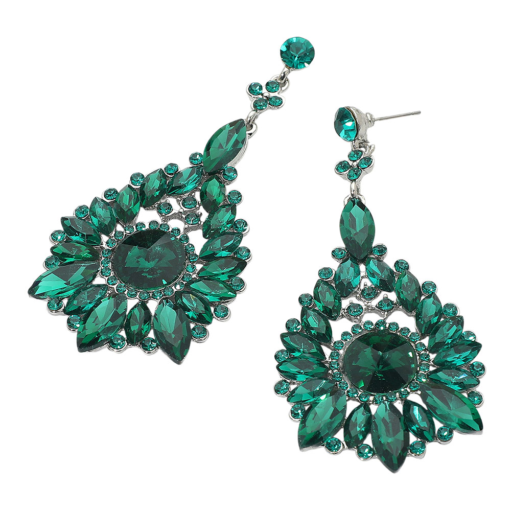 • Make an unforgettable impression with these statement teardrop crystal earrings. Designed with intricate faceted stones in a radiant arrangement, they capture light beautifully for a luxurious look—perfect for evening events, weddings, and glamorous nights out.