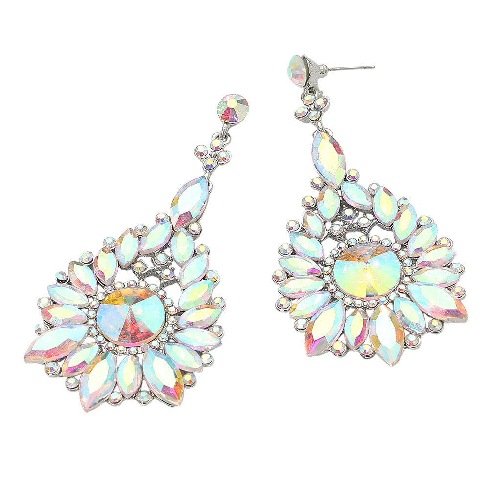 Floral Stone Teardrop Cluster Drop Evening Earrings