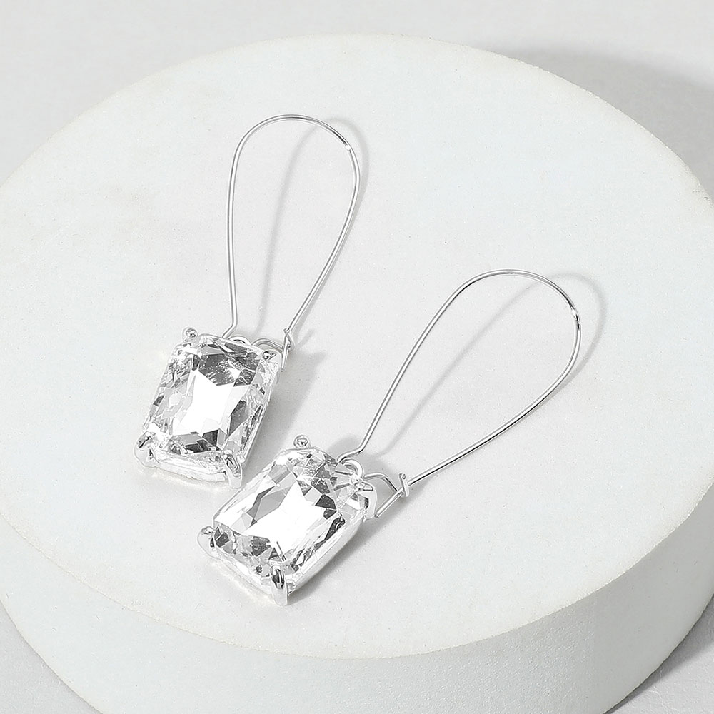 • These minimalist crystal drop earrings feature sleek rectangular stones suspended from delicate loops for a modern, refined look. Perfect for everyday wear or formal occasions, they add just the right touch of sparkle and sophistication to elevate any outfit effortlessly.