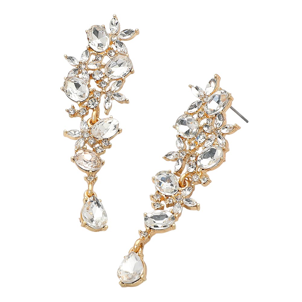 Floral Gem Cluster Drop Evening Earrings