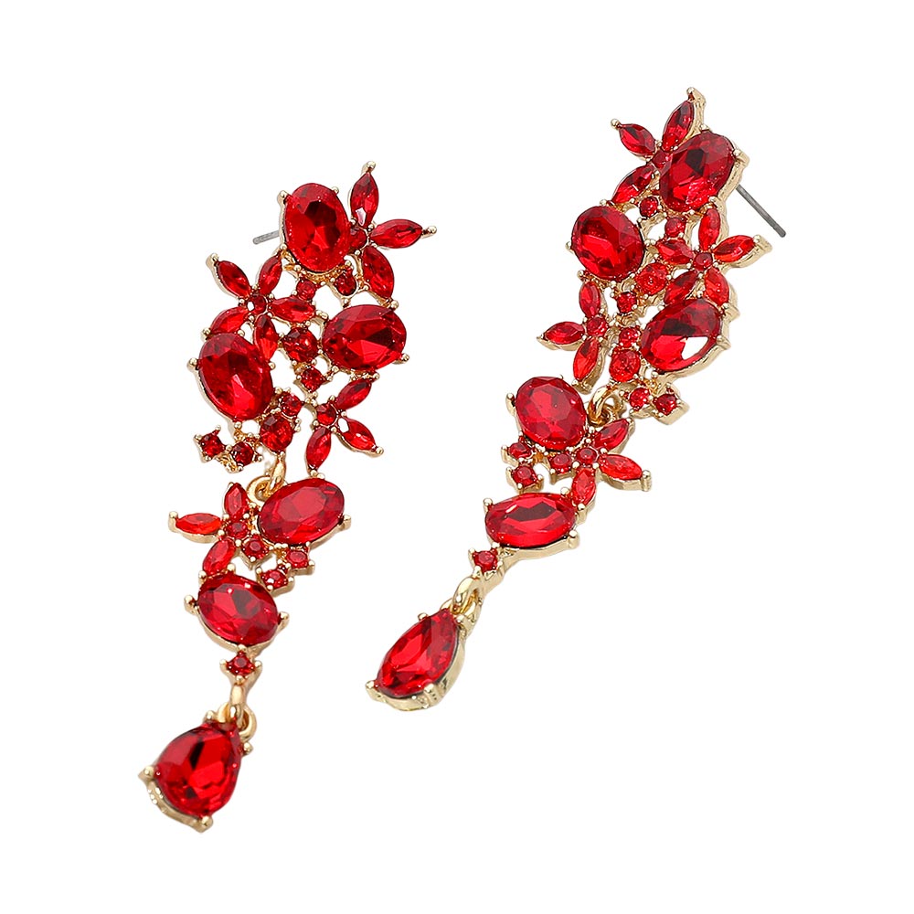 Floral Gem Cluster Drop Evening Earrings