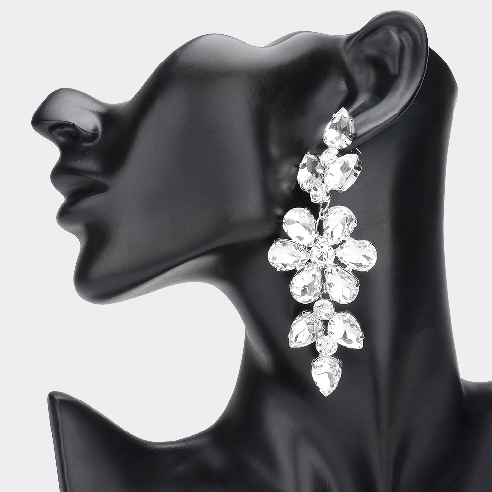 Flower Glass Stone Cluster Accented Evening Earrings