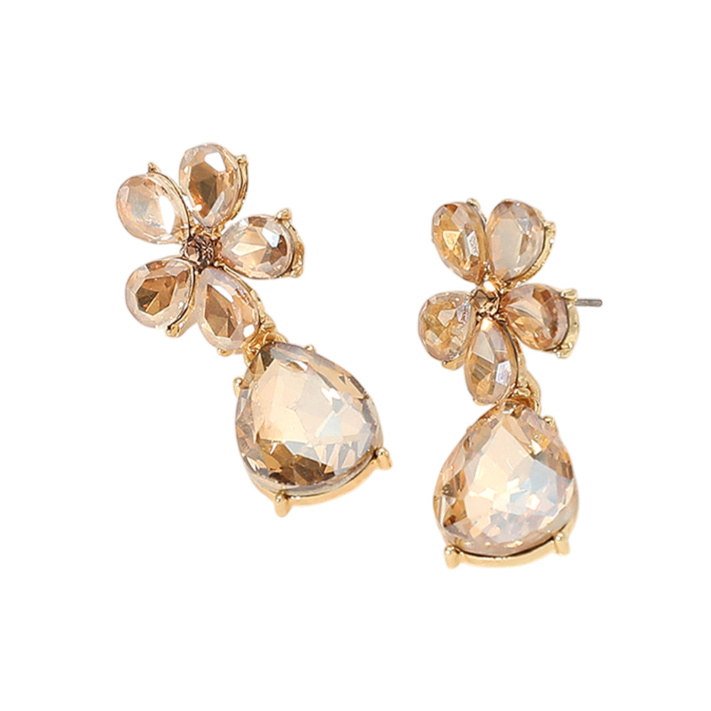 Flower Teardrop Stone Cluster Dangle Evening Earrings