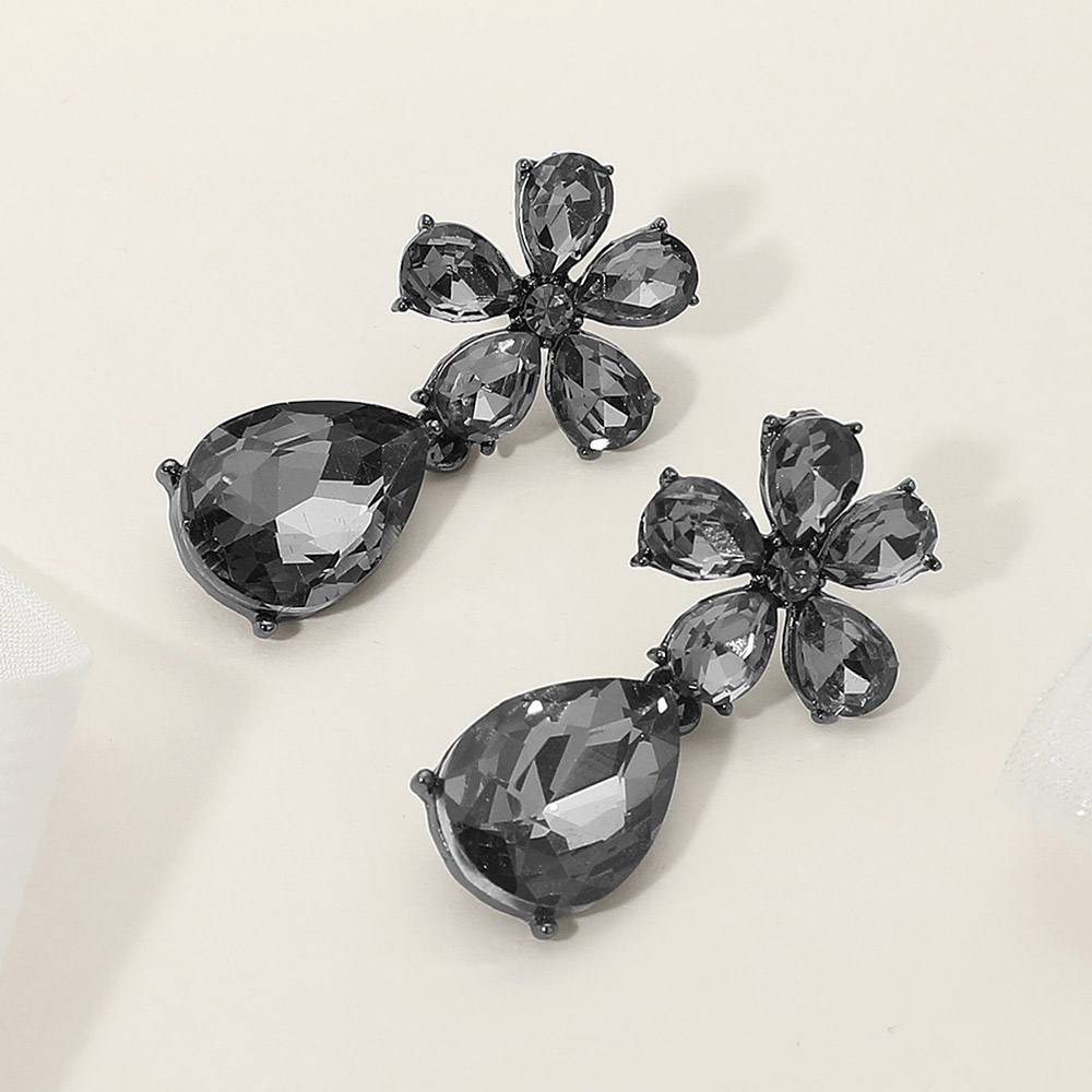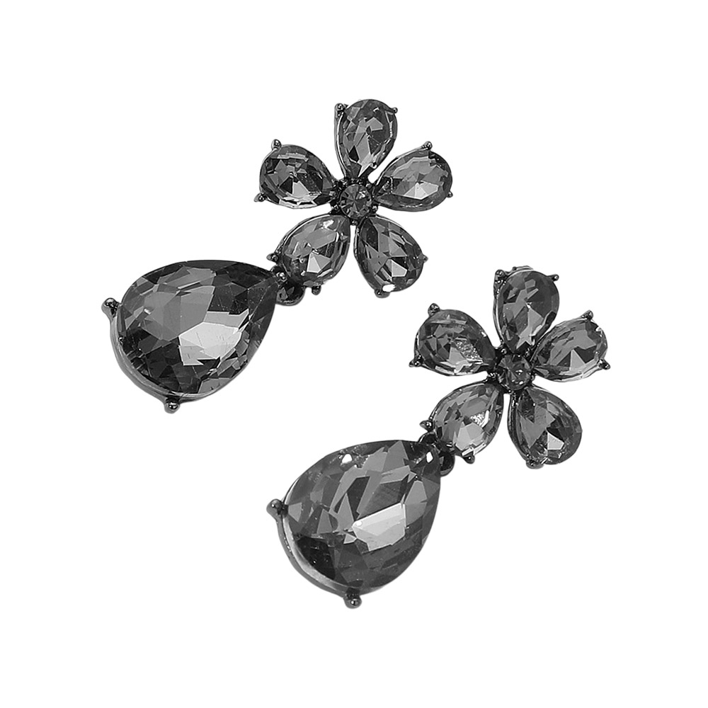 Flower Teardrop Stone Cluster Dangle Evening Earrings Flower Teardrop Stone Cluster Dangle Evening Earrings