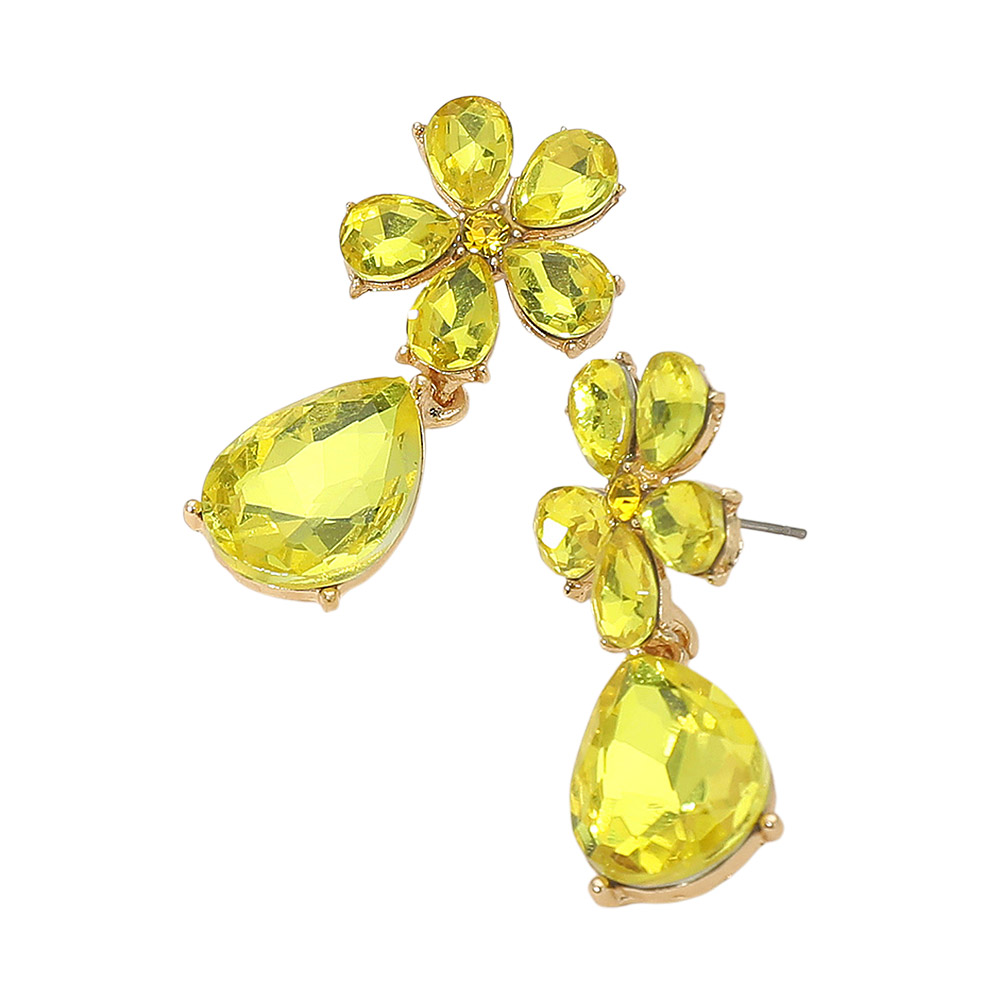 Flower Teardrop Stone Cluster Dangle Evening Earrings Flower Teardrop Stone Cluster Dangle Evening Earrings
