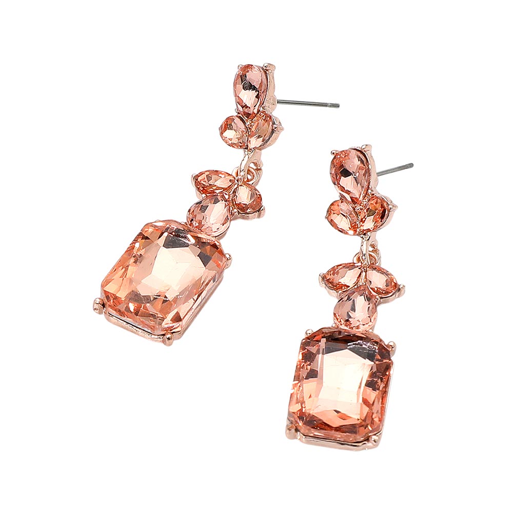 Details • Size : 0.5" X 2" • Post Back • These geometric drop statement earrings feature a bold, faceted design with a cascading arrangement of gem-like shapes. Perfect for adding a touch of sophistication to evening looks, they combine modern elegance with timeless glamour—ideal for special occasions or chic events. • Lead and Nickel Compliant