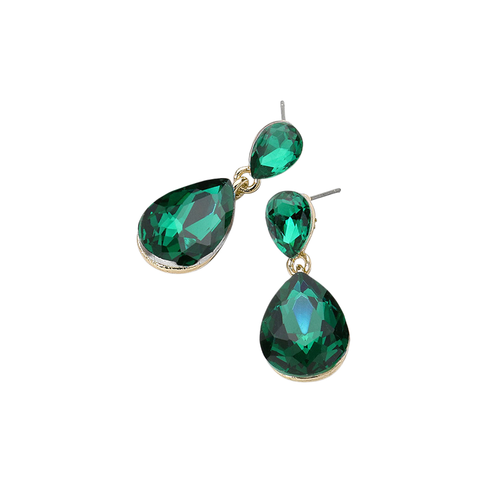 Details • Size : 0.5" X 1.25" • Post Back • These elegant teardrop gemstone earrings feature a refined double-drop design that sparkles with every movement. Perfect for both day and evening wear, they add a graceful touch of luxury and timeless sophistication, making them an ideal choice for any special occasion.