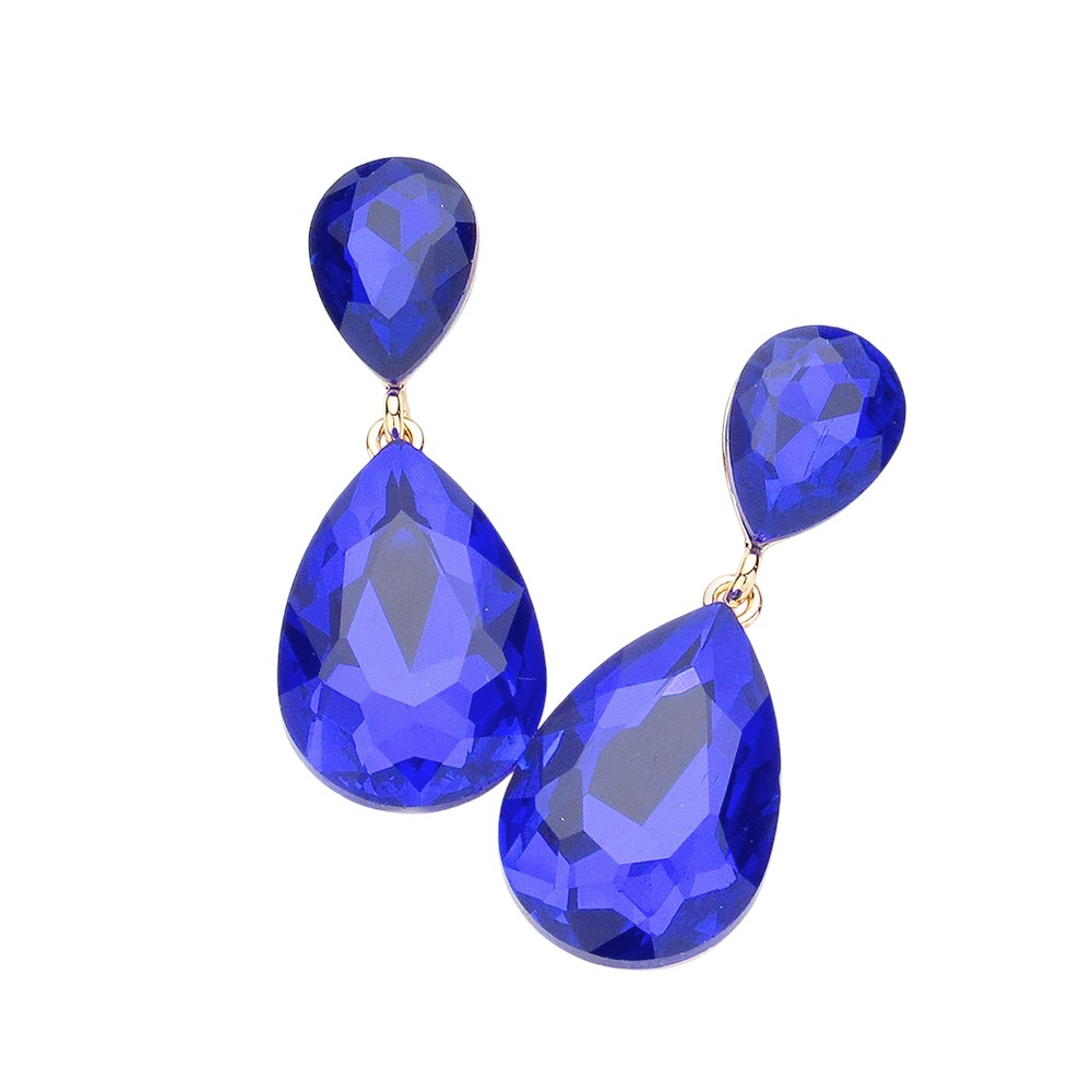 Glass crystal double teardrop evening earrings