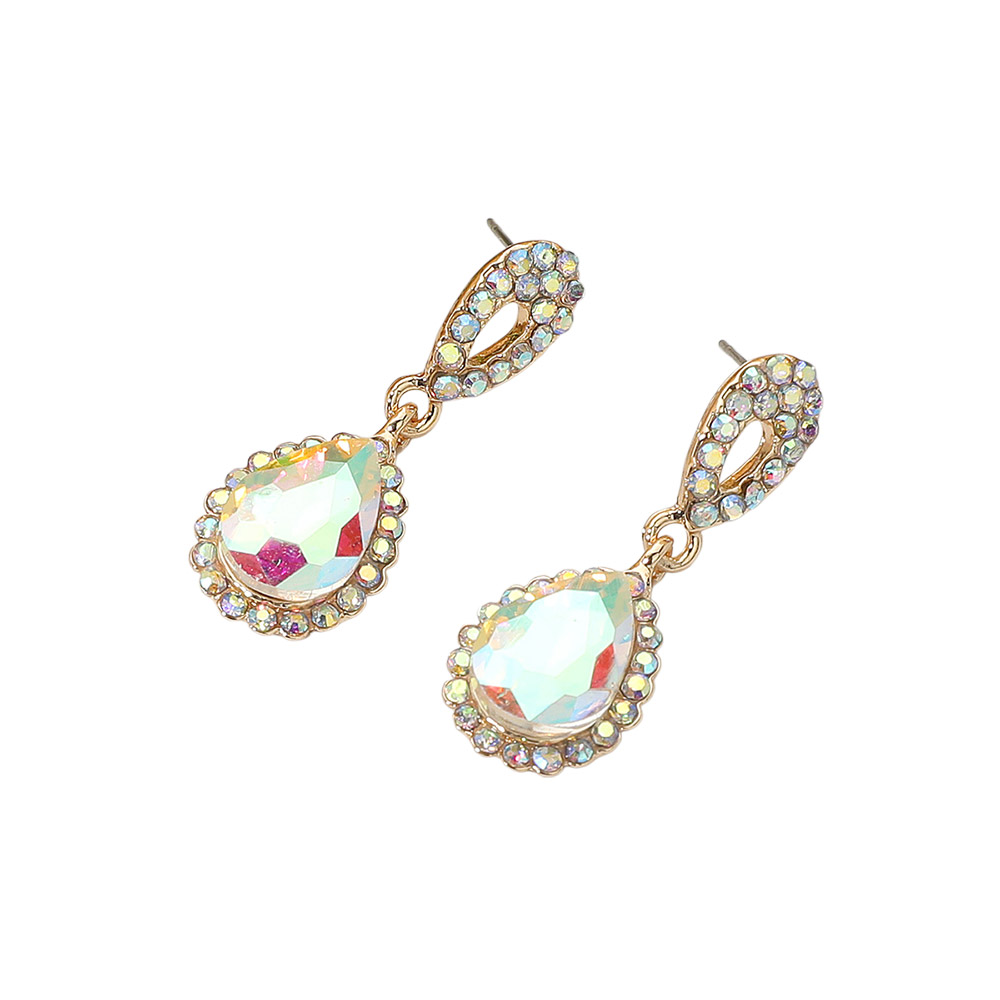 Iridescent Teardrop Crystal Dangle Earrings Iridescent Teardrop Crystal Dangle Earrings