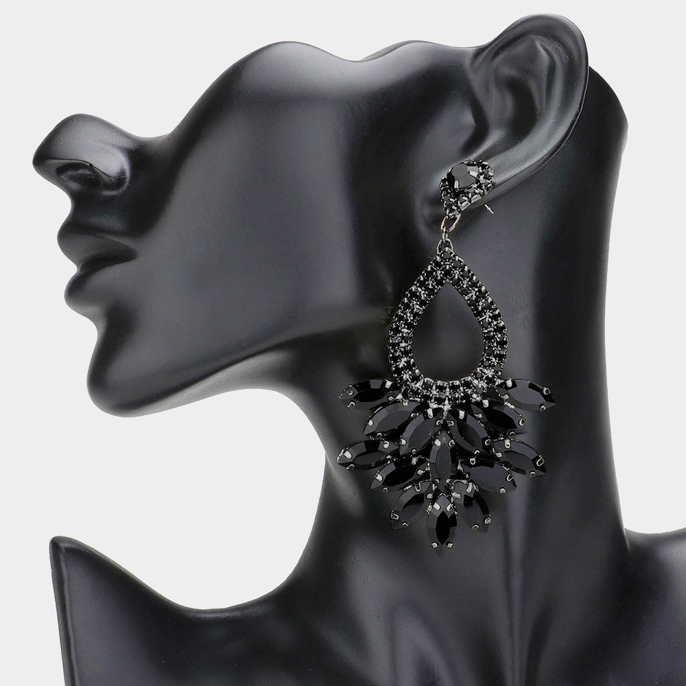 Details • Size : 2.2" x 4" • Post Back • Elevate your look with these elegant teardrop chandelier earrings featuring radiant stones and intricate detailing. Designed to capture light and attention, they bring sophistication and sparkle to formal occasions, weddings, or any evening ensemble that deserves a touch of glamour. • Lead and Nickel Compliant