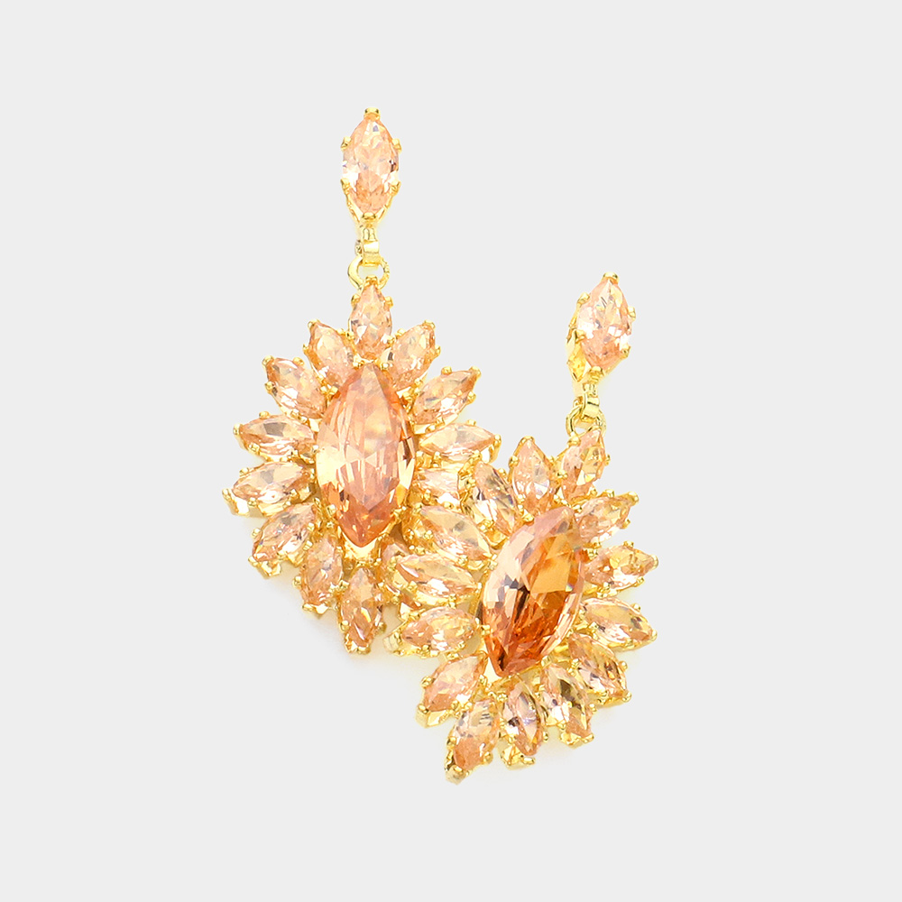 Round Center Stone Accent Transparent Resin Petal Flower Earrings