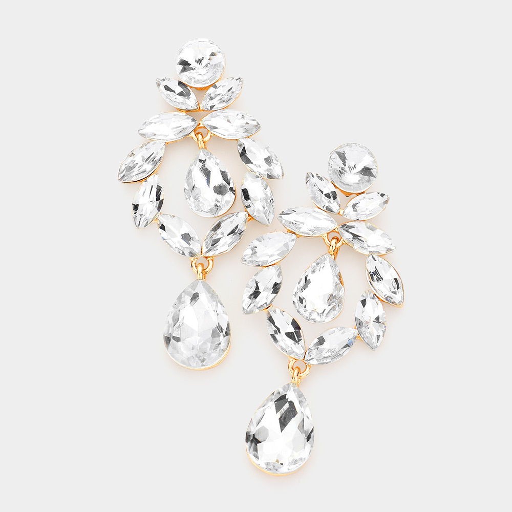 Teardrop Stone Cluster Pointed Chandelier Dangle Evening Earrings