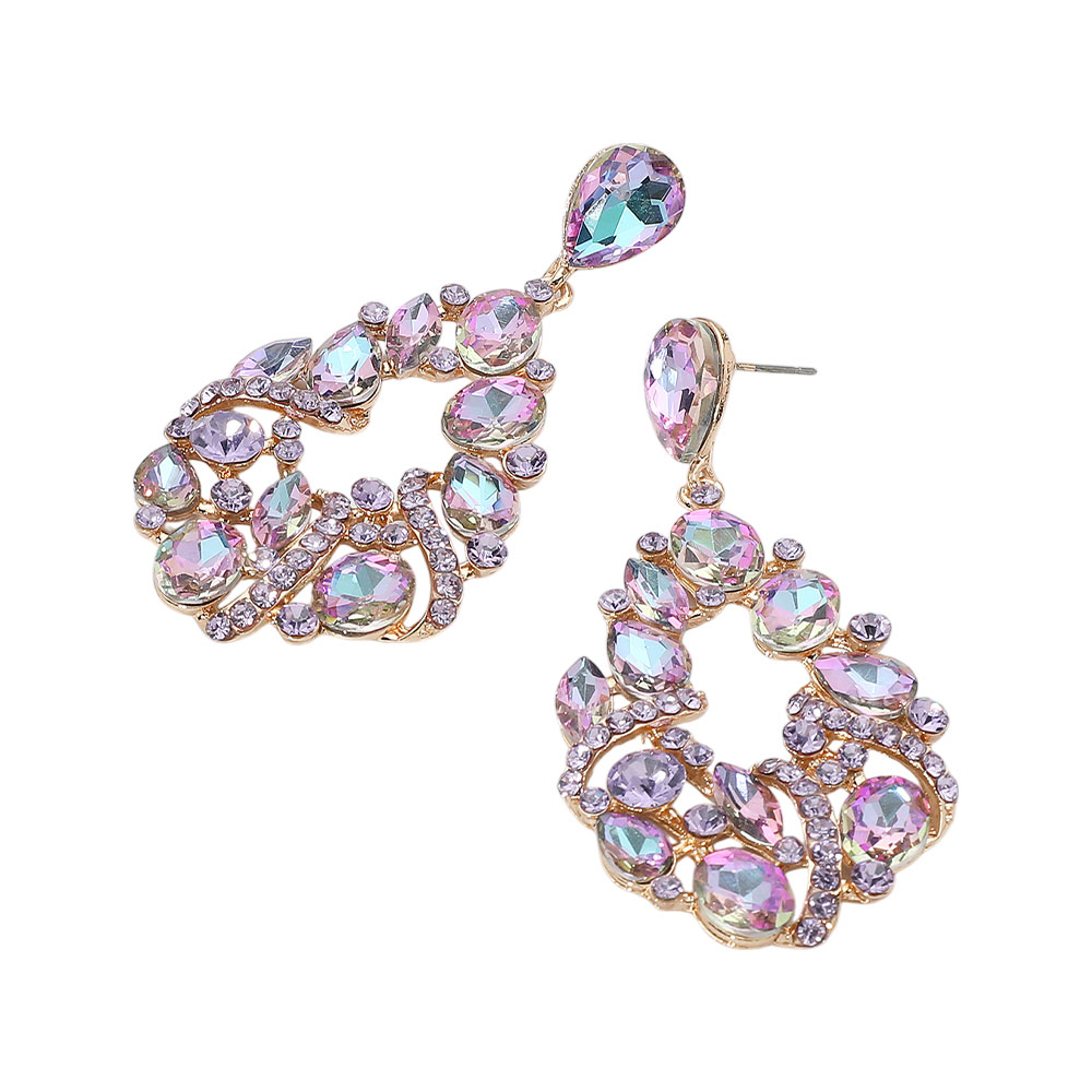 Multi Stone Cluster Teardrop Dangle Evening Earrings