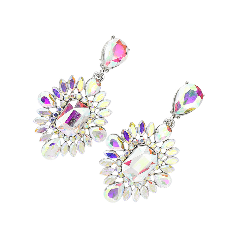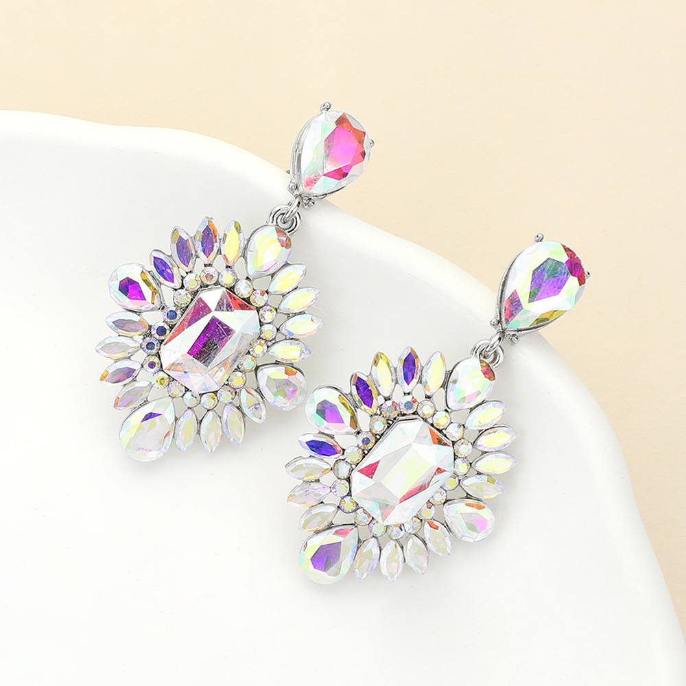 Rectangle Marquise Teardrop Stone Cluster Dangle Evening Earrings