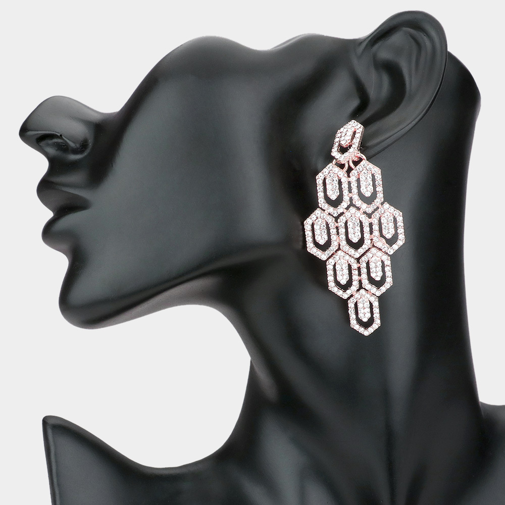 Rhinestone Pave Hexagon Link Statement Evening Earrings Rhinestone Pave Hexagon Link Statement Evening Earrings Rhinestone Pave Hexagon Link Statement Evening Earrings