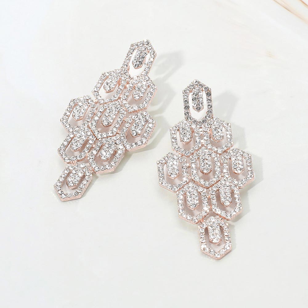 Rhinestone Pave Hexagon Link Statement Evening Earrings