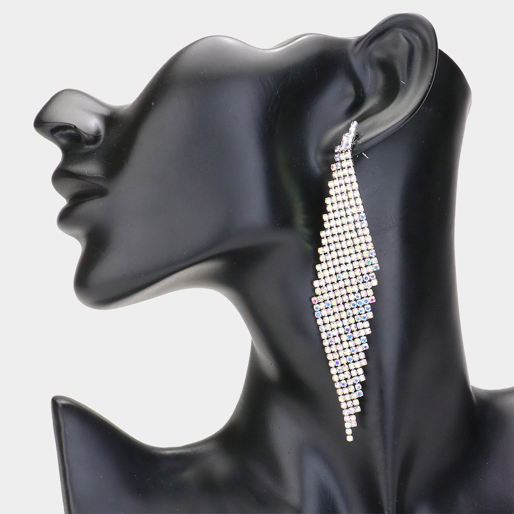 Elegant Rectangle Crystal Drop Dangle Evening Clip On Earrings