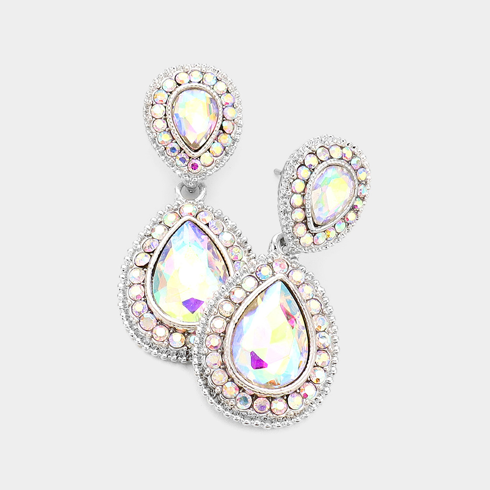 Marquise Stone Cluster Drop Teardrop Dangle Evening Earrings