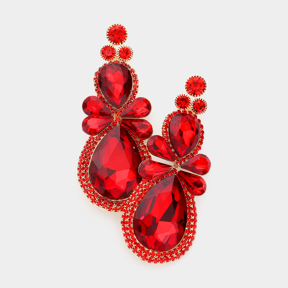 Cubic Zirconia Teardrop Crystal Stud Evening Earrings