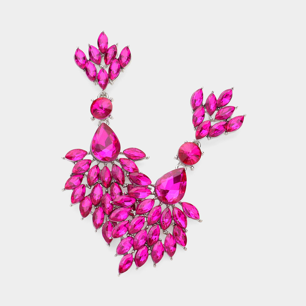 Teardrop Accented Marquise Stone Cluster Dangle Evening Earrings