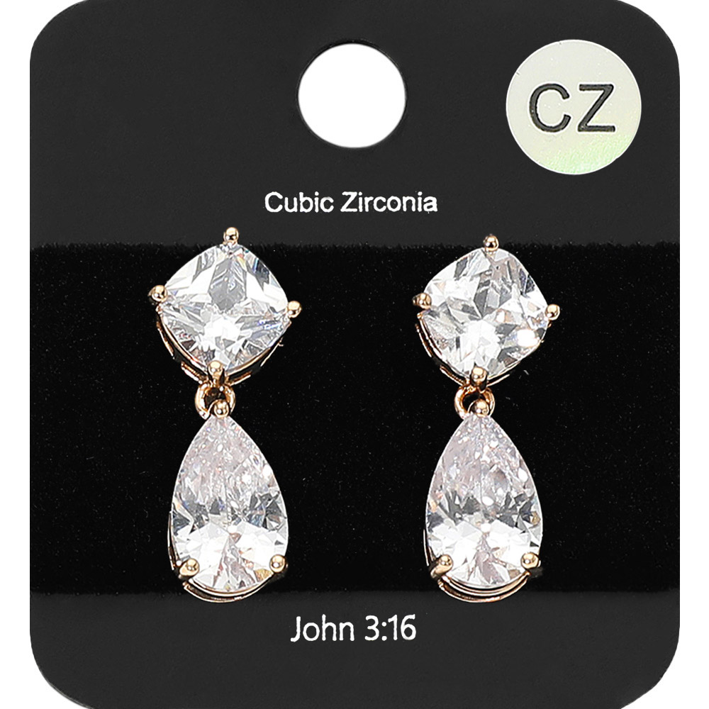 • These teardrop cubic zirconia drop earrings showcase dazzling brilliance with a radiant dual-stone design. The shimmering teardrop crystals catch the light beautifully, creating an elegant statement piece perfect for weddings, evening events, or adding sparkle to any outfit.