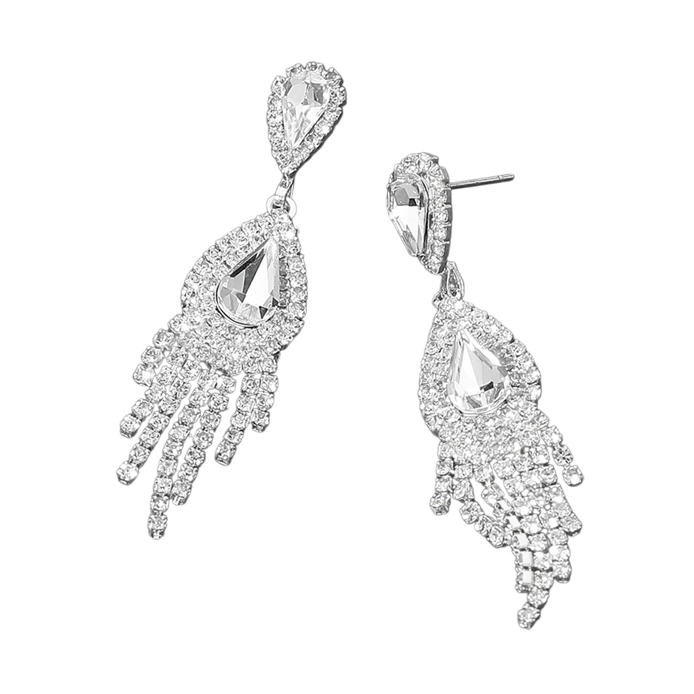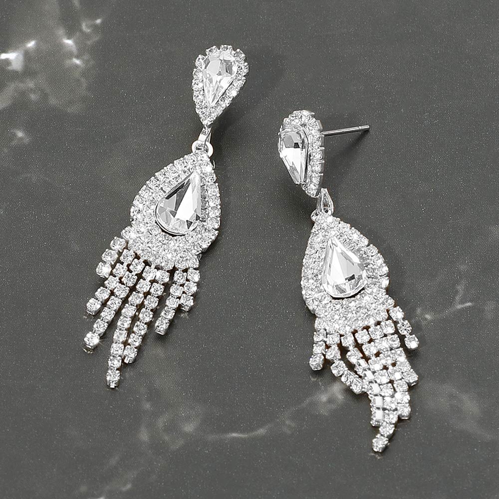• Dramatic teardrop crystal fringe earrings featuring layered halos and cascading strands for a bold, sparkling finish. Their elongated silhouette adds radiant movement, making them perfect for evening events, formal occasions, weddings, or any look that calls for high-impact glamour and shine.