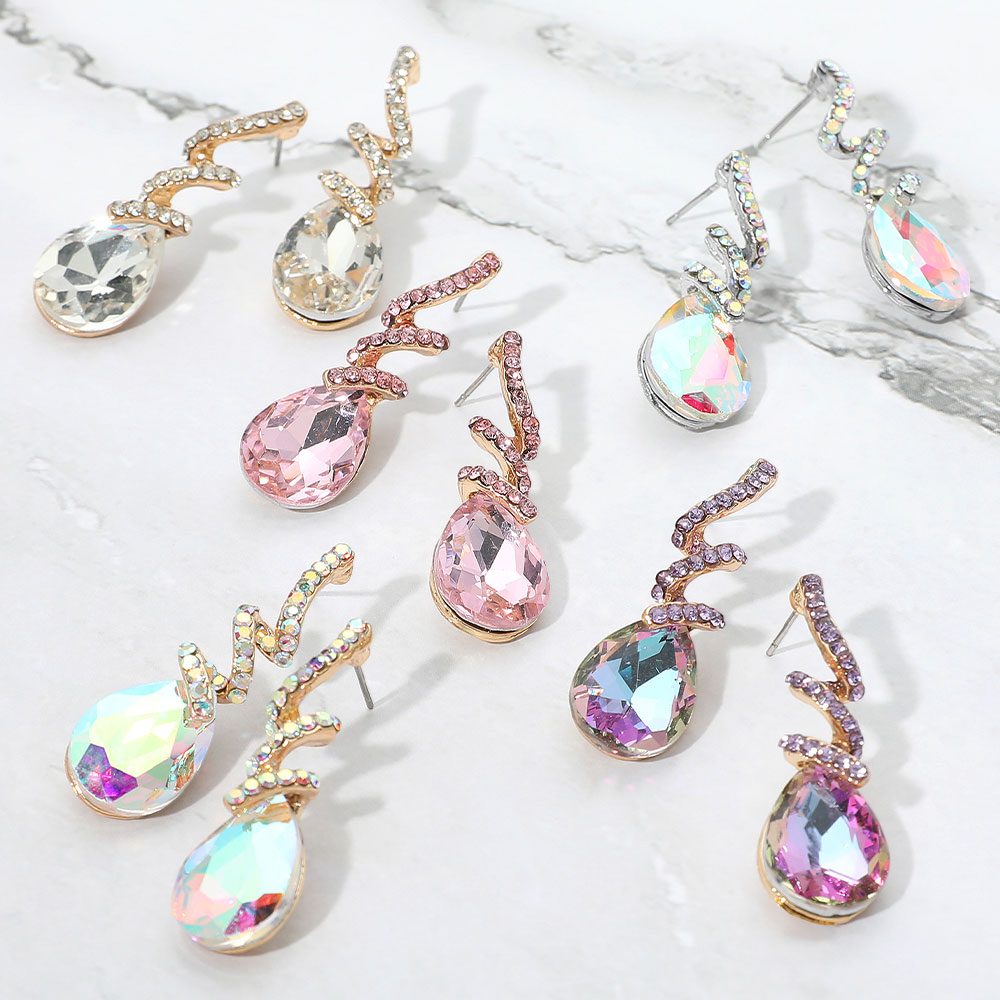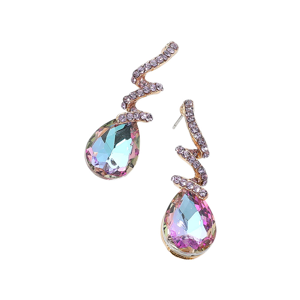 Teardrop Glass Stone Drop Stone Paved Swirl Evening Earrings