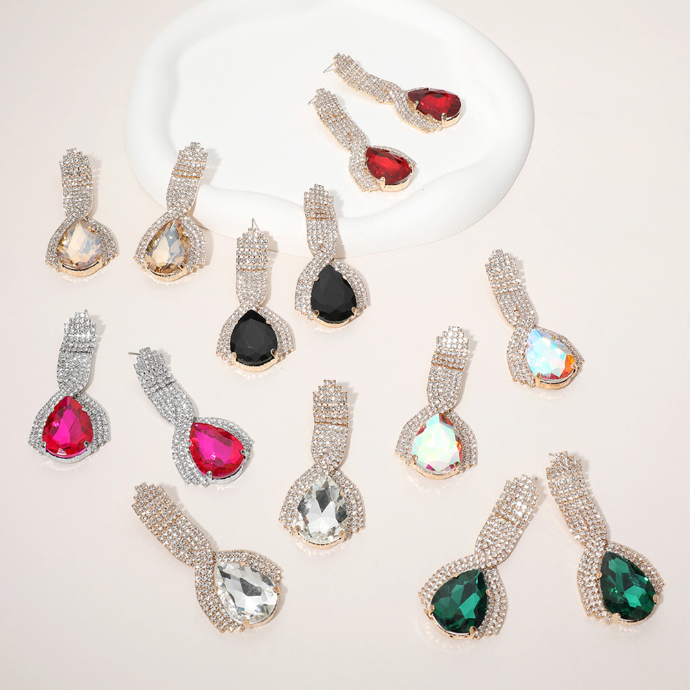 Teardrop Glass Stone Pointed Rhinestone Paved Evening Earrings Teardrop Glass Stone Pointed Rhinestone Paved Evening Earrings Teardrop Glass Stone Pointed Rhinestone Paved Evening Earrings