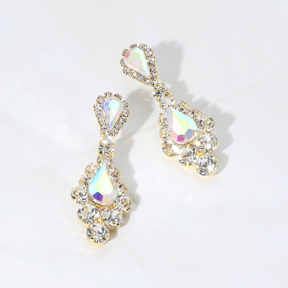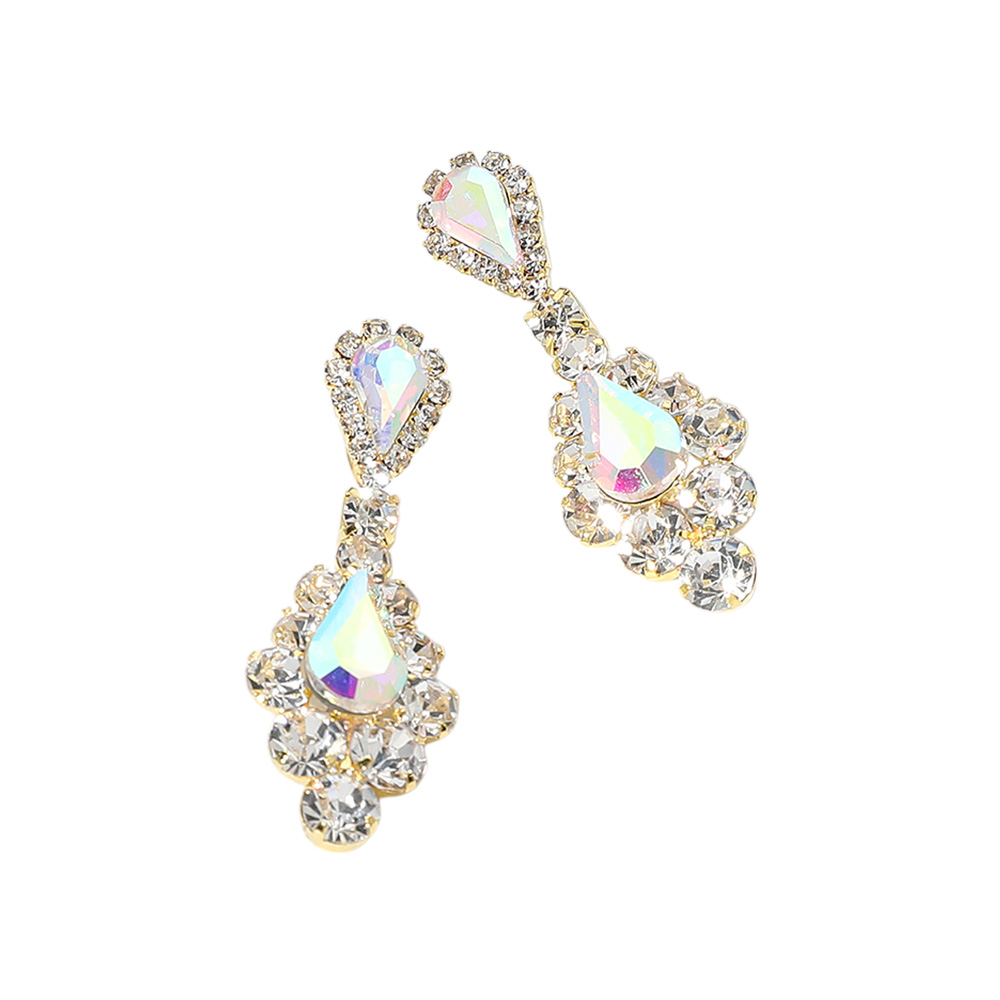 Teardrop Stone Cluster Dangle Evening Earrings