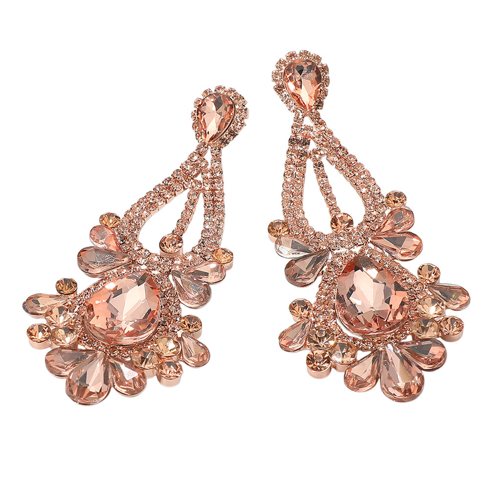 Details • Size : 1.5" X 3.1" • Post Back • Turn heads with these iridescent teardrop statement earrings, featuring a dazzling arrangement of shimmering stones and intricate detailing. Perfect for parties, weddings, and glamorous occasions, these earrings add a bold touch of sparkle and sophistication to any elegant look. • Lead and Nickel Compliant