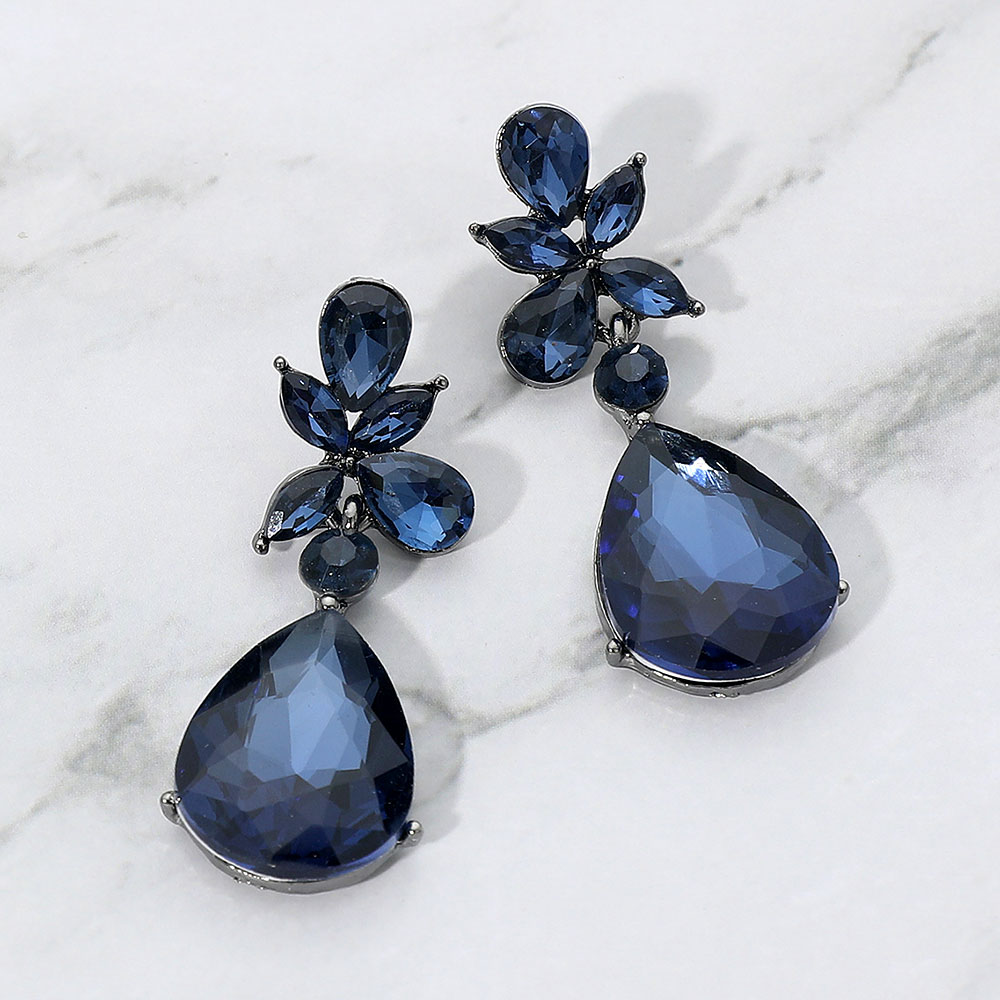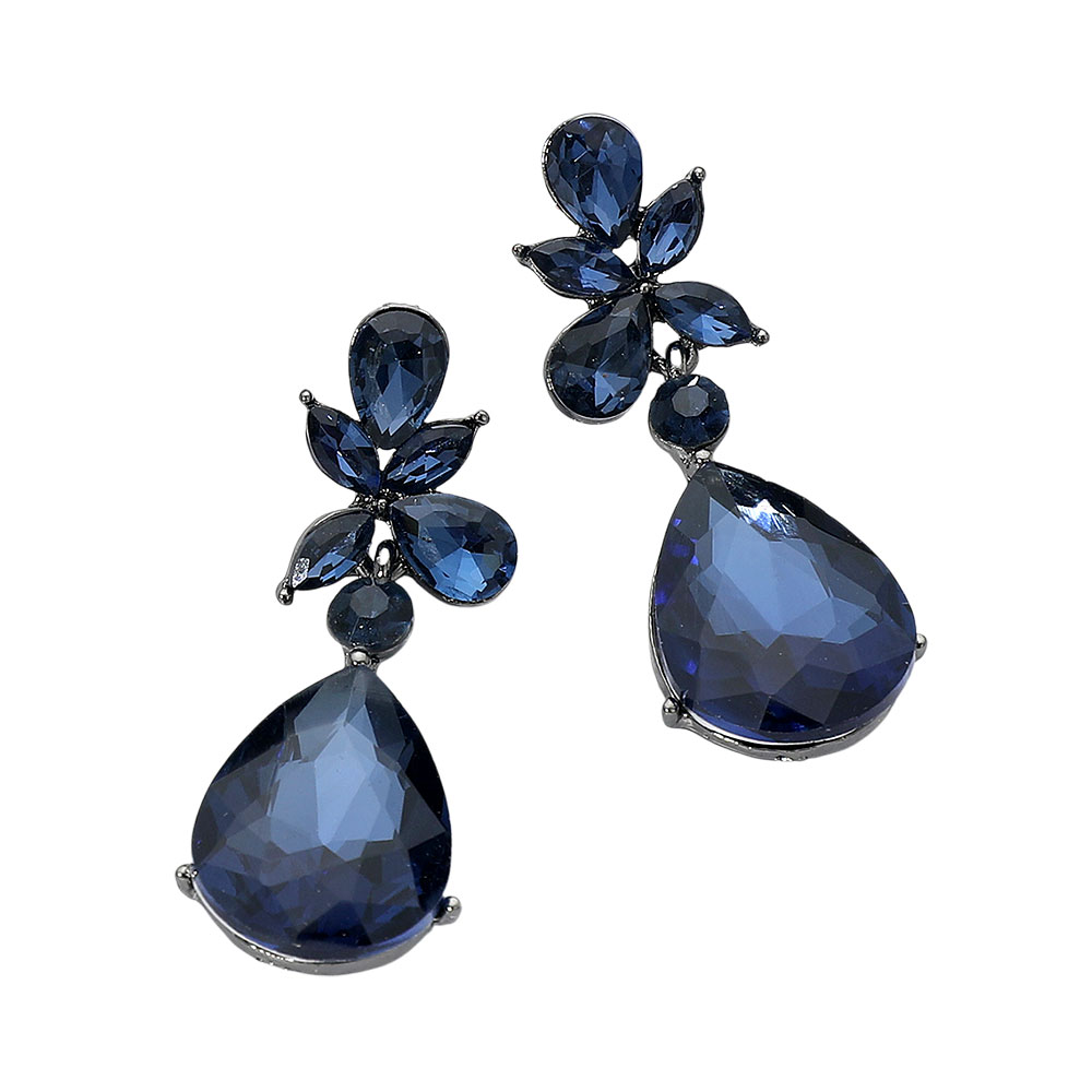 • Make a striking impression with these faceted teardrop statement earrings. Featuring bold, multi-cut stones arranged in a floral-inspired design, they capture light beautifully for a refined yet dramatic finish—perfect for evening wear or elevating any special occasion look.