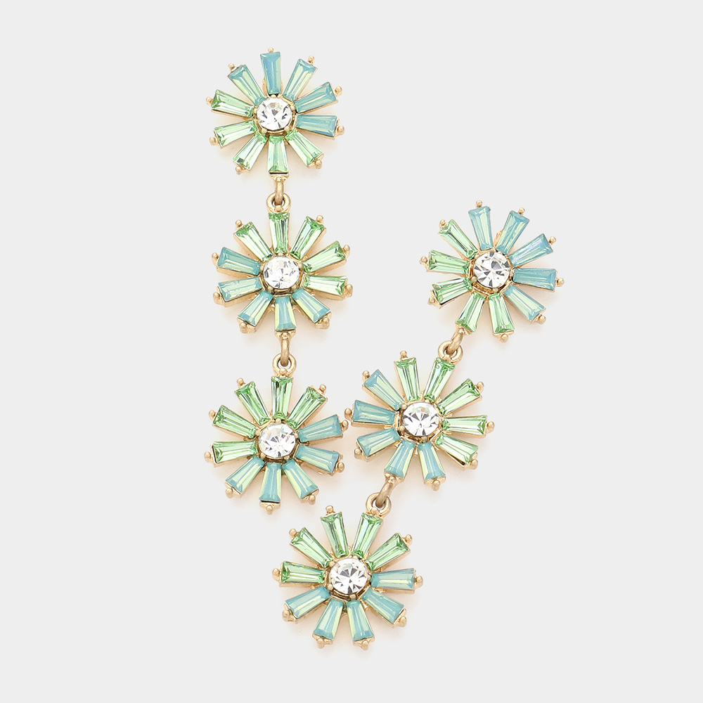 • Turn heads with these Floral Drop Earrings featuring multi-petal crystal blooms that shimmer with every move. Perfect for parties, weddings, or special occasions, these dazzling statement earrings bring elegance, energy, and bold sophistication to any outfit.