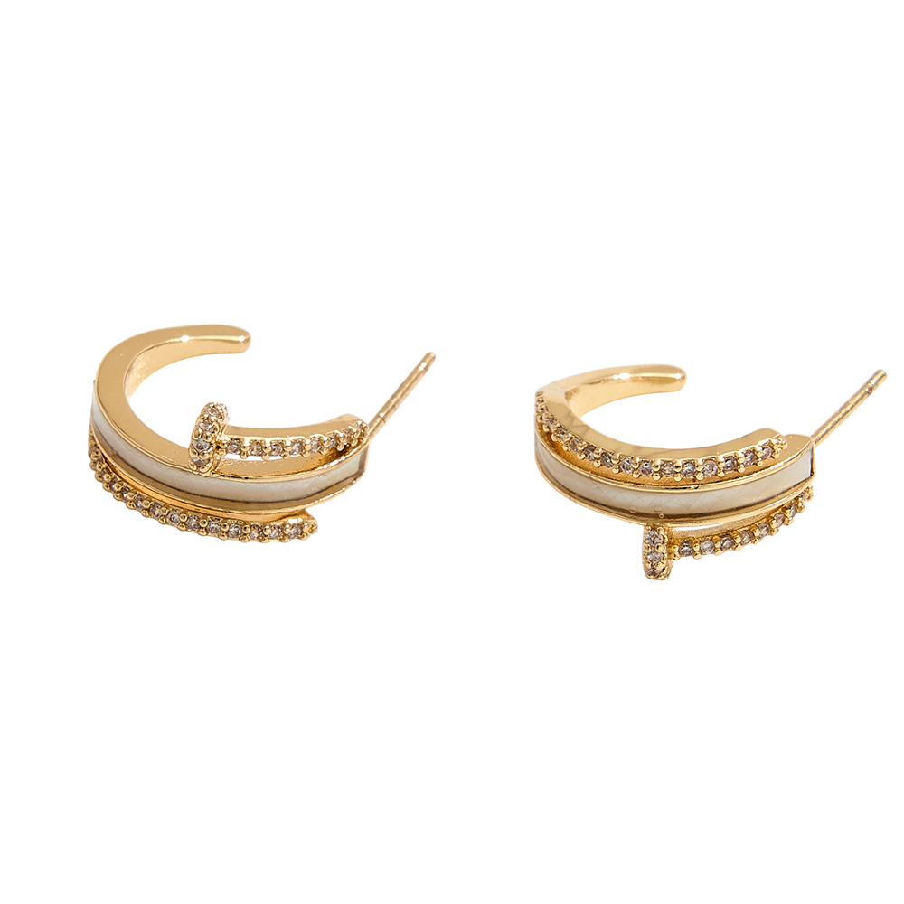 14K Gold Dipped CZ Stone Paved Nail Head Mother of Pearl Inlay Mini Hoop Earrings