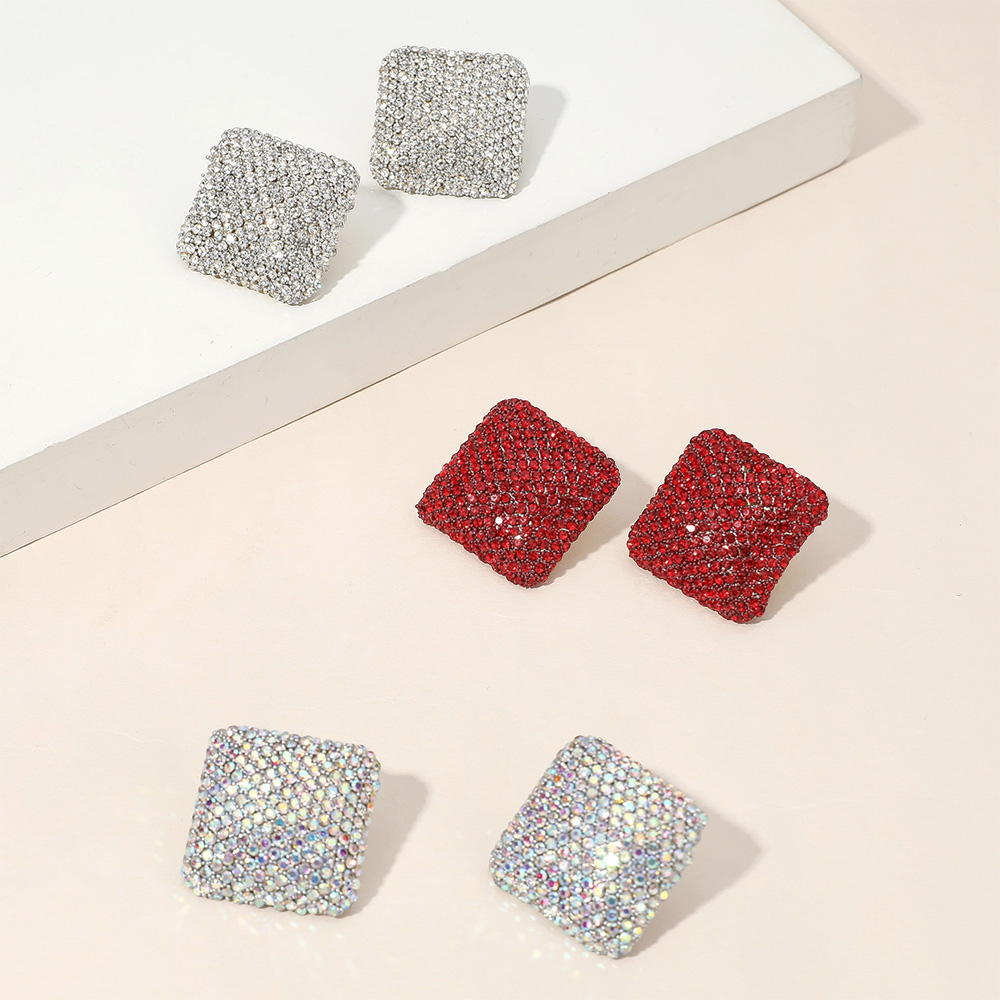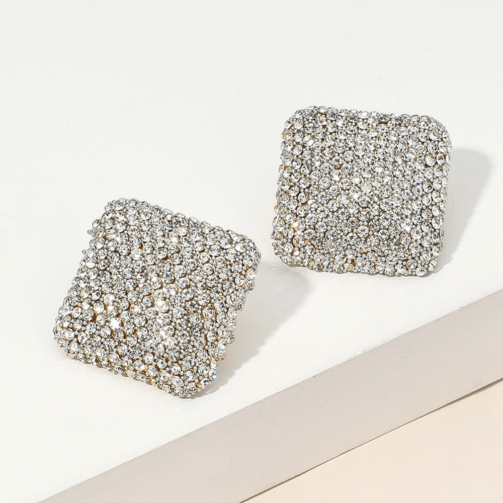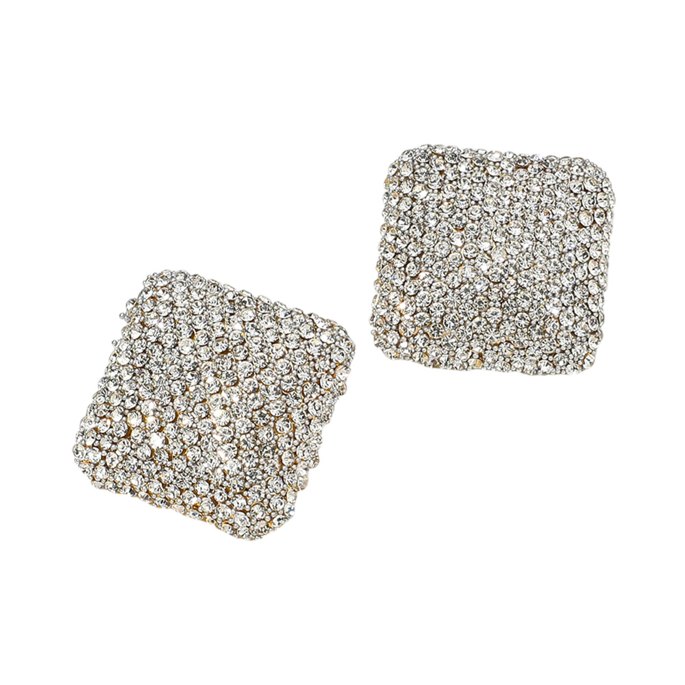 18K Gold Dipped Rhinestone Studded Square Earrings