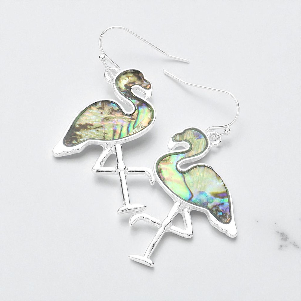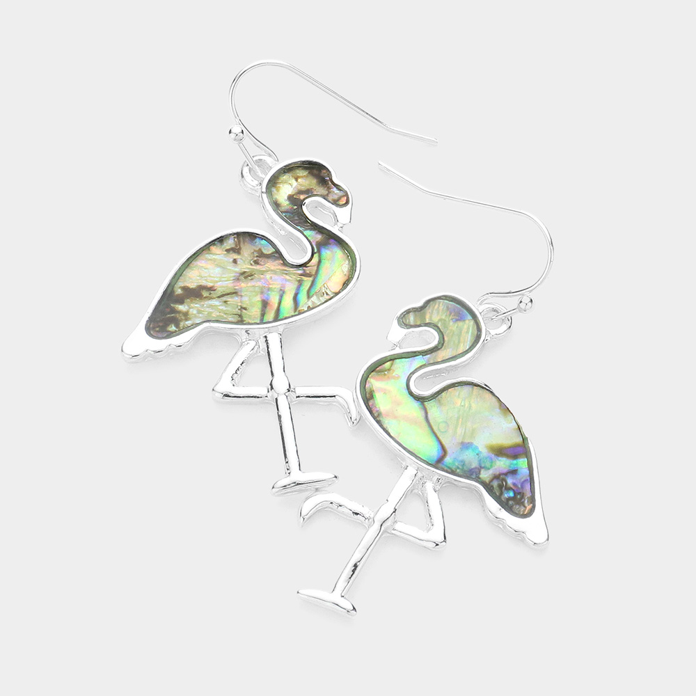 Antique Metal Abalone Dolphin Oval Dangle Earrings