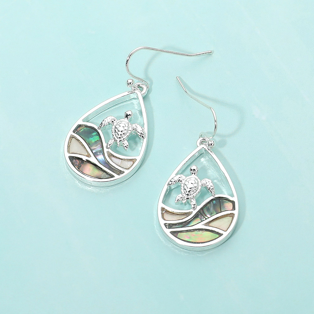 Abalone Sea Turtle Wave Teardrop Dangle Earrings