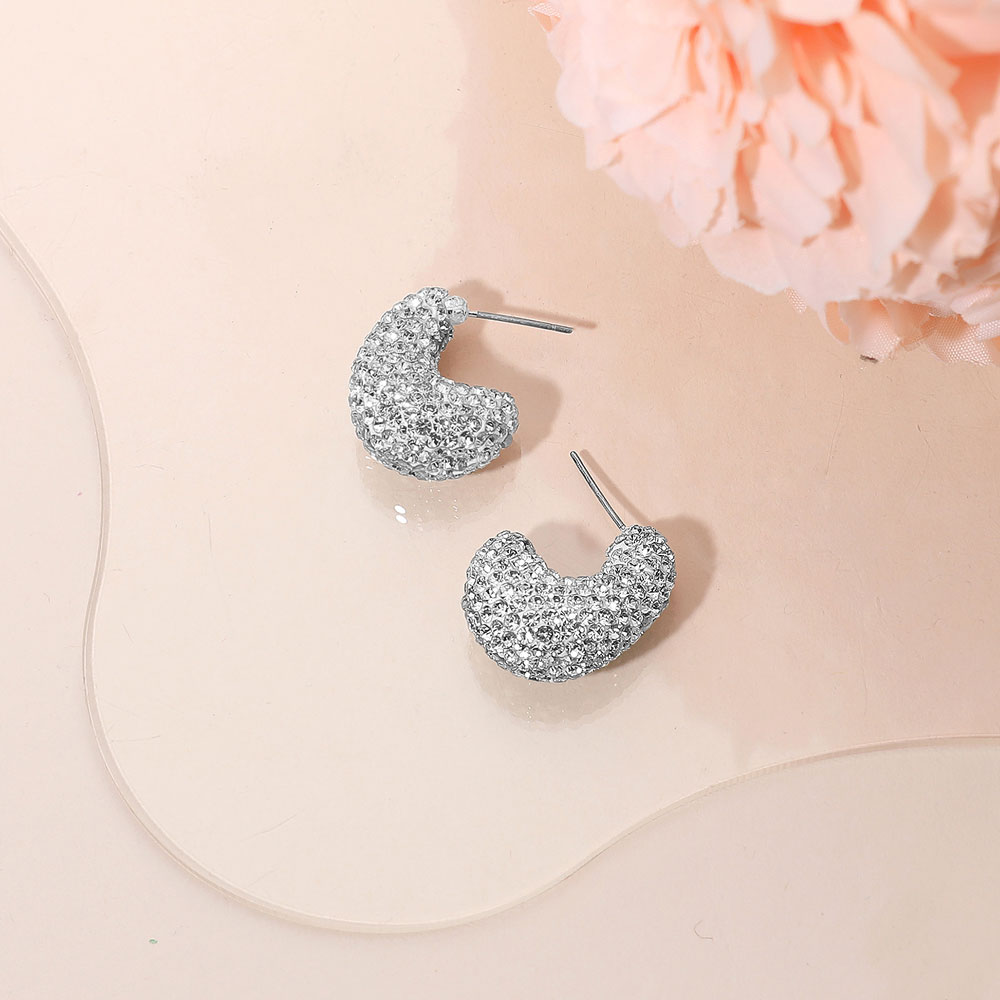 Bling Studded Small Chunky Teardrop Hoop Earrings